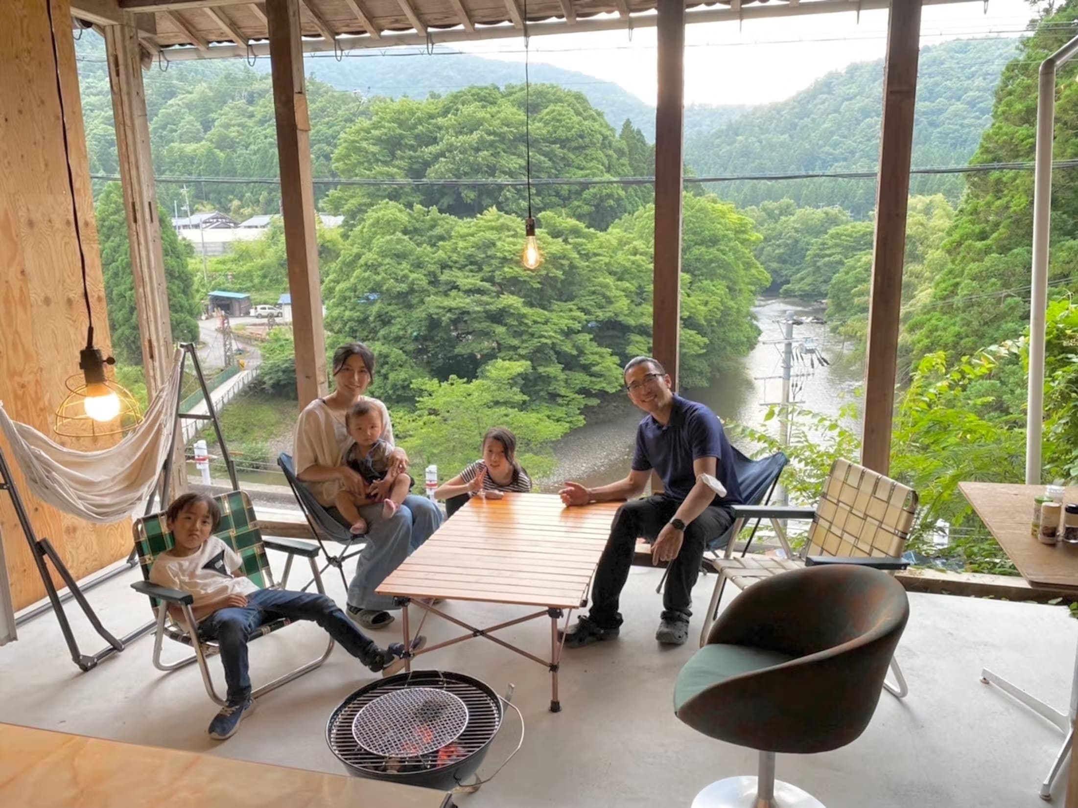 滋賀県長浜の自然を楽しめる立地です。目の前の川では鮎釣りやバーベキューが楽しめます。